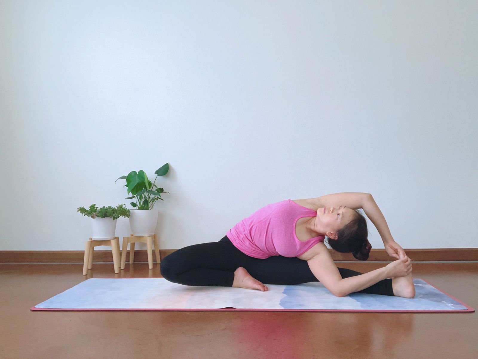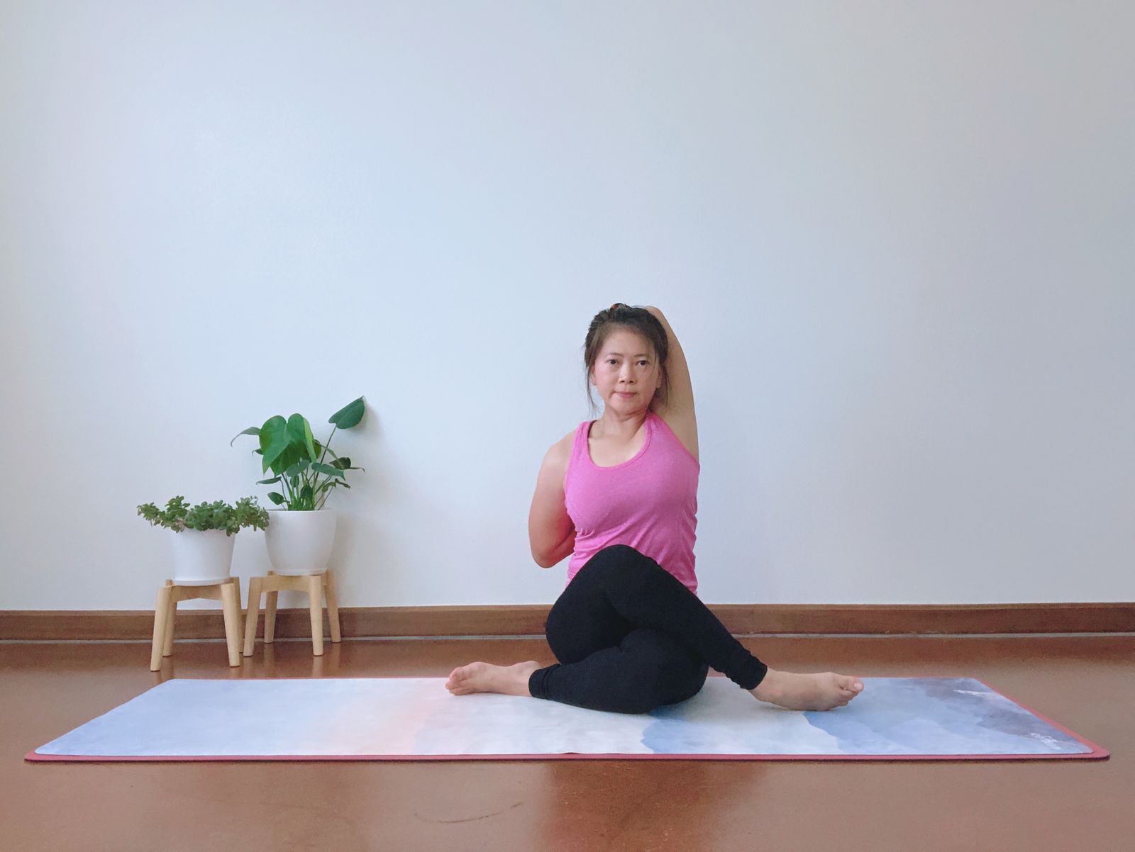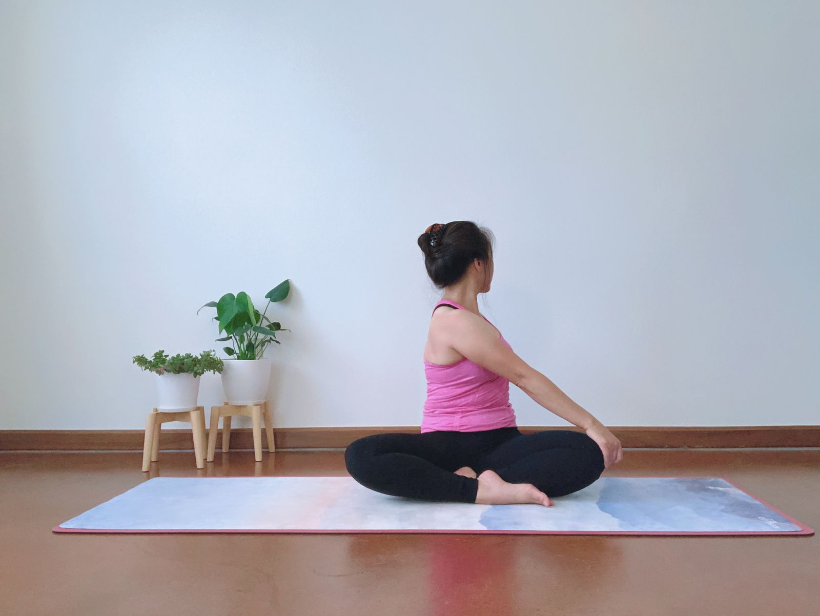 Return to the easy pose, then repeat the same process for your left side. This counts as one round.
