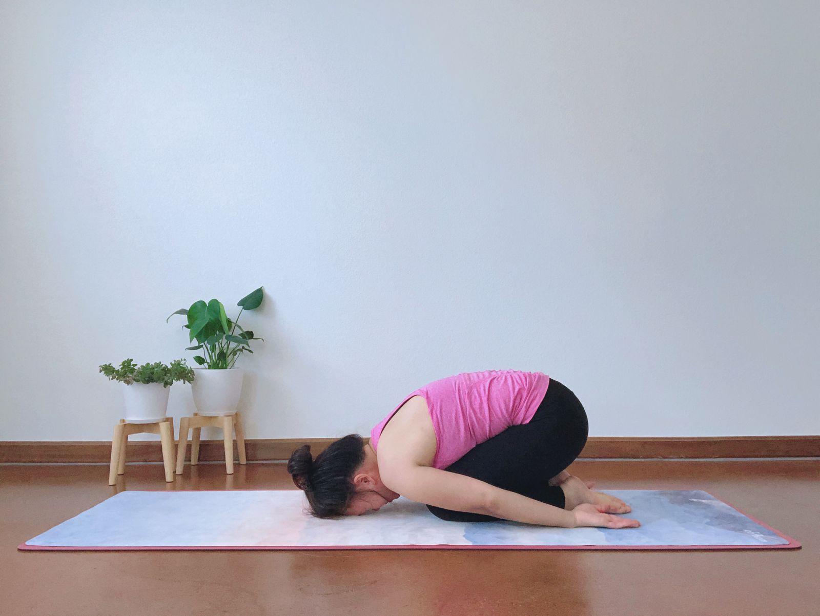 Balasana is a resting pose. It gently stretches the hips, thighs, and ankles, calms the brain, and helps relieve stress and fatigue. Stay anywhere from thirty seconds to a few minutes, breathing naturally.